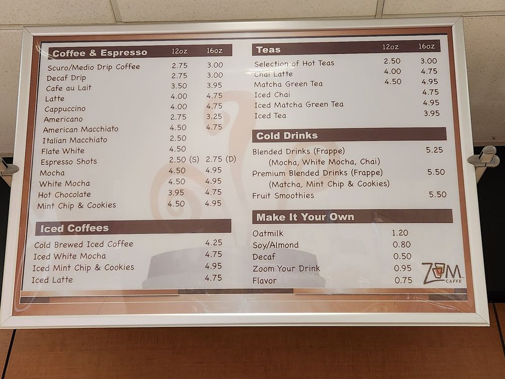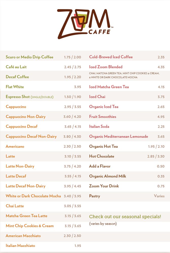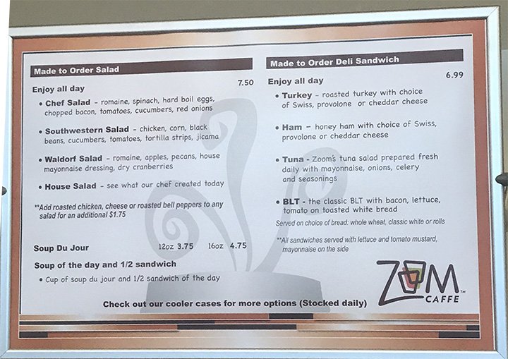 ZoomCaffe Menu